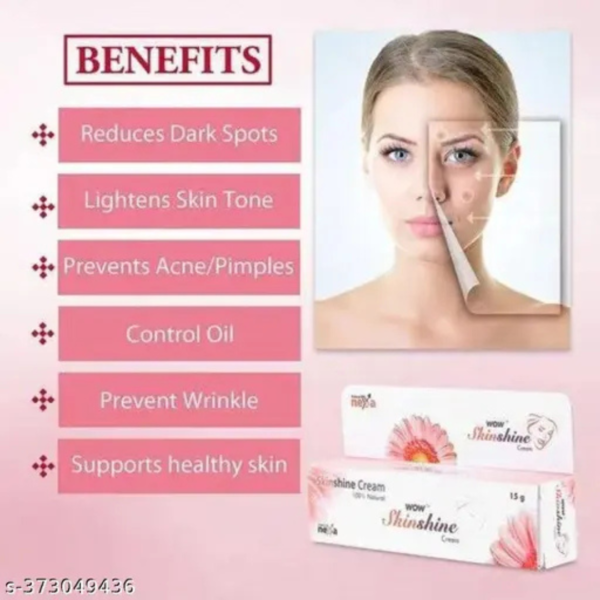 Skinshine Cream is only for external use. Use Skinshine Cream as prescribed. Avoid contact of Skinshine Cream with nose, mouth, eyes, ears, or vagina. Do not apply on a cut, open wound, or burned skin area. In case Skinshine Cream comes in contact with these areas accidentally, rinse with water thoroughly. Some people may experience skin pain, acne, redness, irritation, burning, itching, or stinging sensation of the skin. Most of these side effects of Skinshine Cream do not require medical attention and gradually resolve over time. However, if the side effects persist or worsen, please consult your doctor.